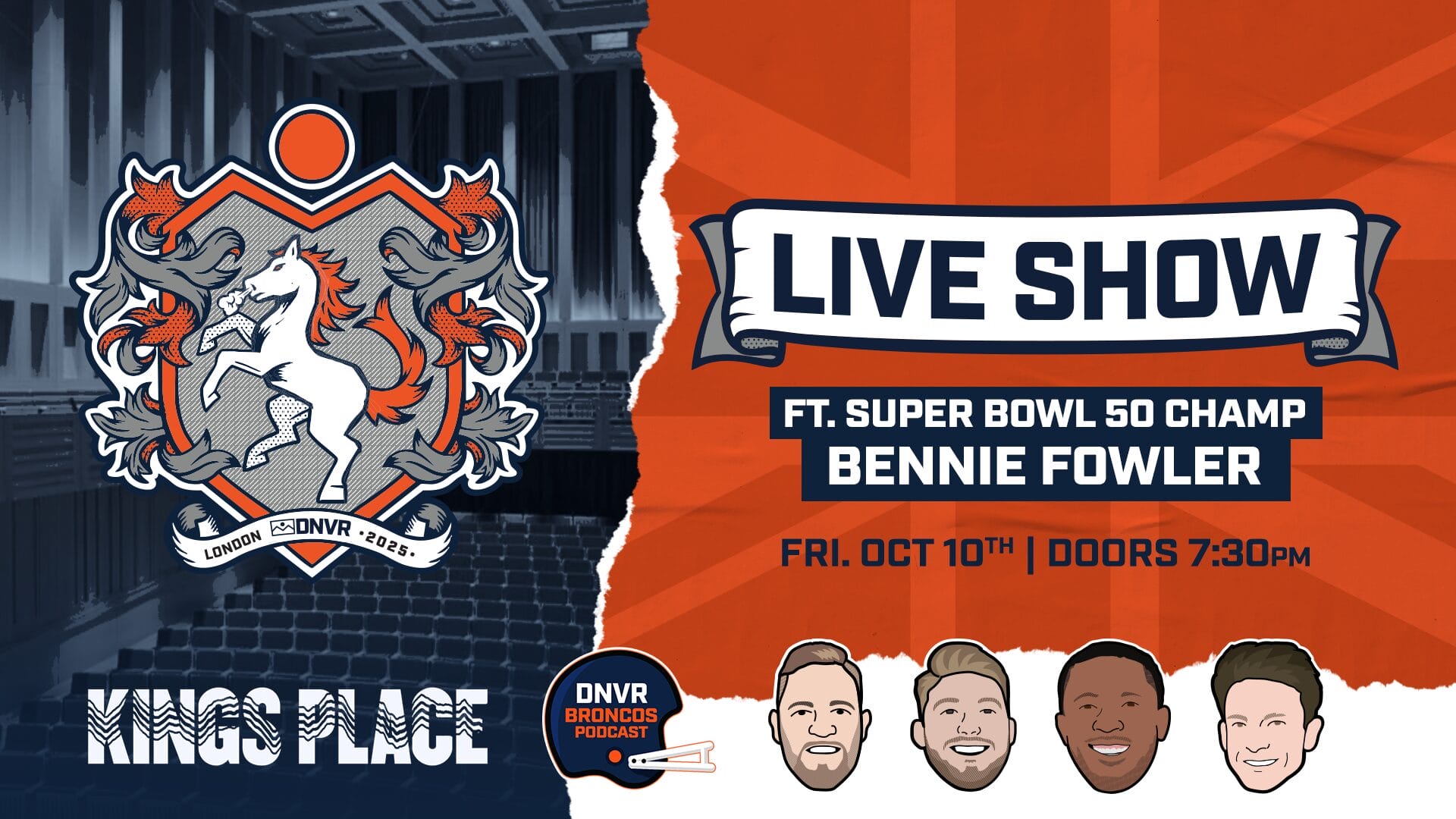 King's Place 90 York Wy, London N1 9AG, United KingdomJoin the DNVR Broncos Crew at King's Place in London for this live, interactive show! There are GA Tickets and Limited VIP Tickets which include front row reserved seating, Meet […]
